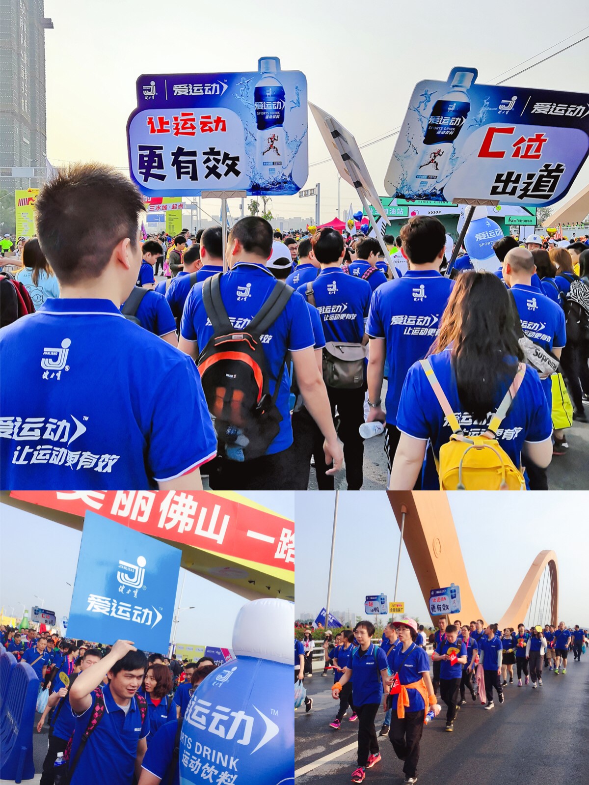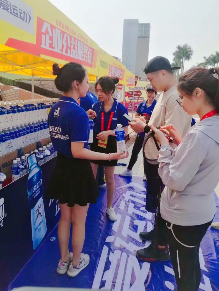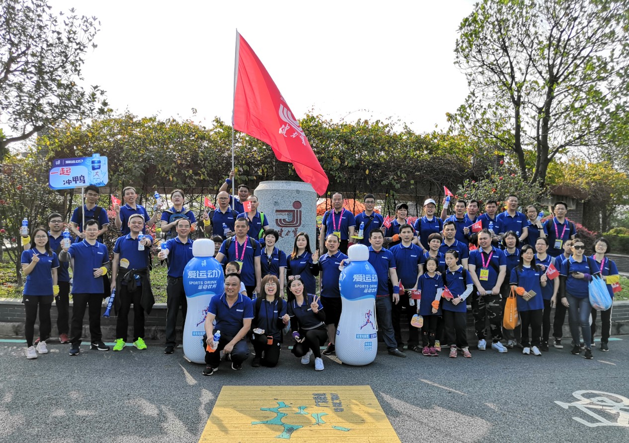 在众多参与的队伍之中,最具气势的徒步方阵要数我们健力宝公司旗下 “爱运动”运动饮料组成的品牌方阵,组织了约400人参加这个徒步活动,全部由我们公司员工组成,整个徒步过程中喊着整齐的口号,统一身着我们“爱运动”品牌的服装,形成一片蓝色的海洋,为佛山50公里徒步增添了一道亮丽的风景线。此次活动也是我们健力宝爱运动运动饮料2019年上市的第一场大型活动,也标志着爱运动运动饮料大力进军运动饮料市场的重要信号。